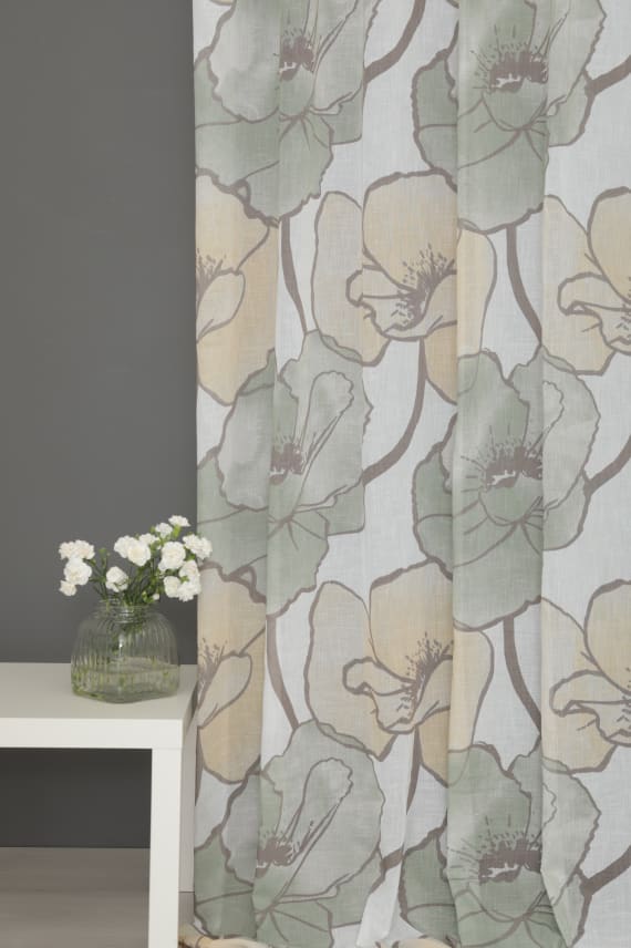 Kuosi on painettu kevyelle, hieman läpikuultavalle verholaadulle, jonka materiaalista osa on kierrätettyä. Ei kaupalliseen käyttöön.