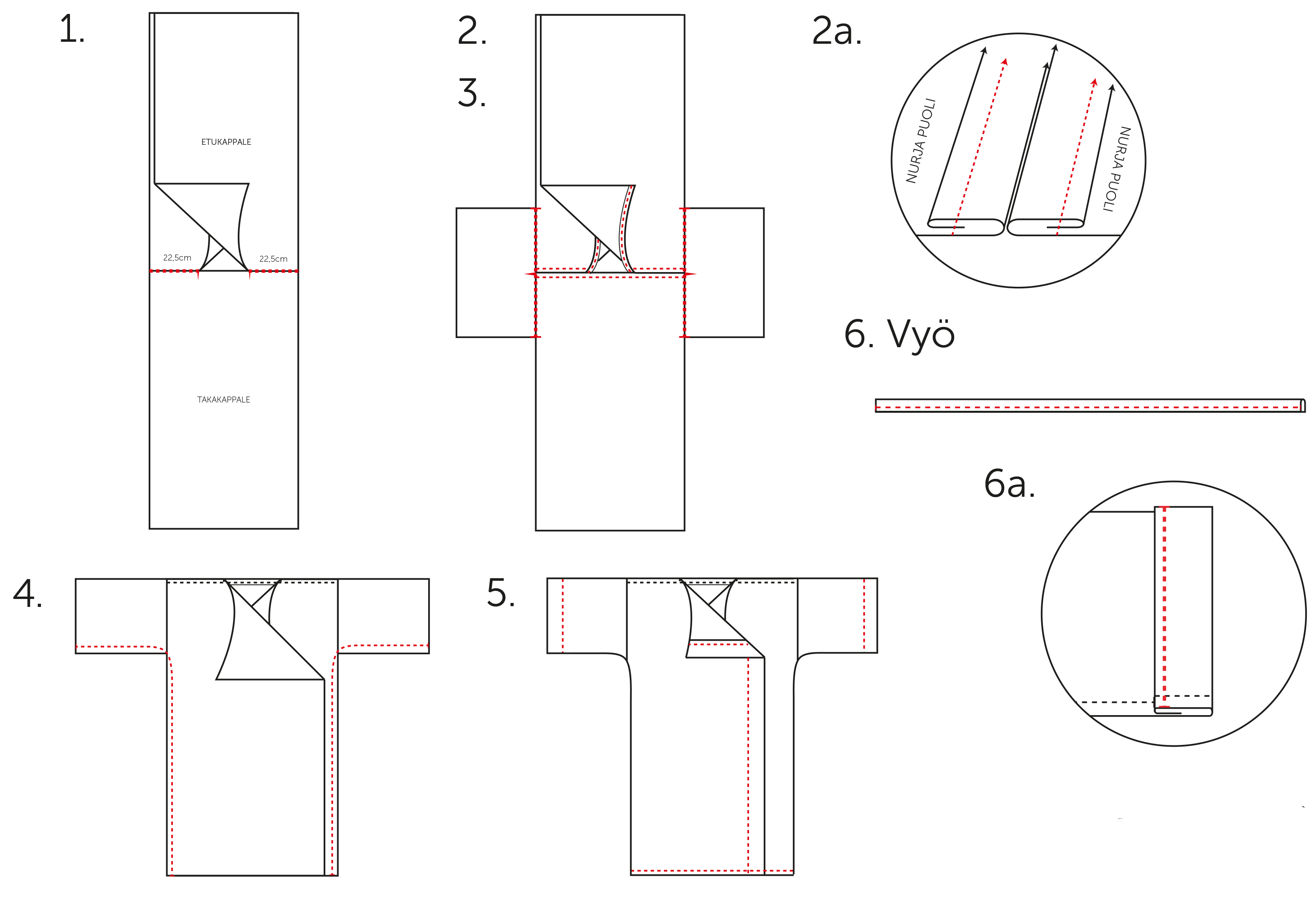 Ompele olkasaumat ja sivusaumat 1cm saumanvaroilla.