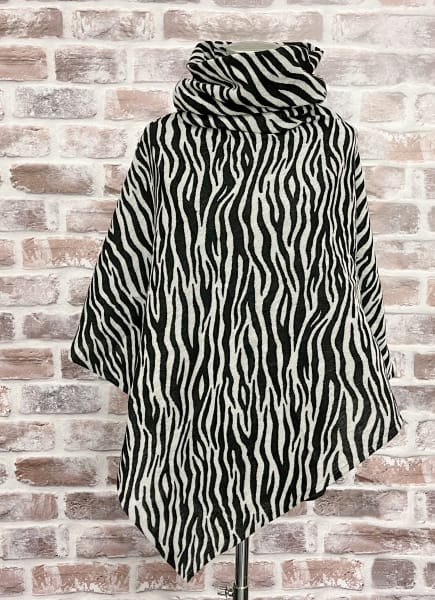 Vinkki! Ompele samasta kankaasta myös tuubihuivi ja saat kivan kokonaisuuden, kuten kuvassa alla. Kuvan ponchoon on käytetty n. 70 cm Seepra-merinovillaa.