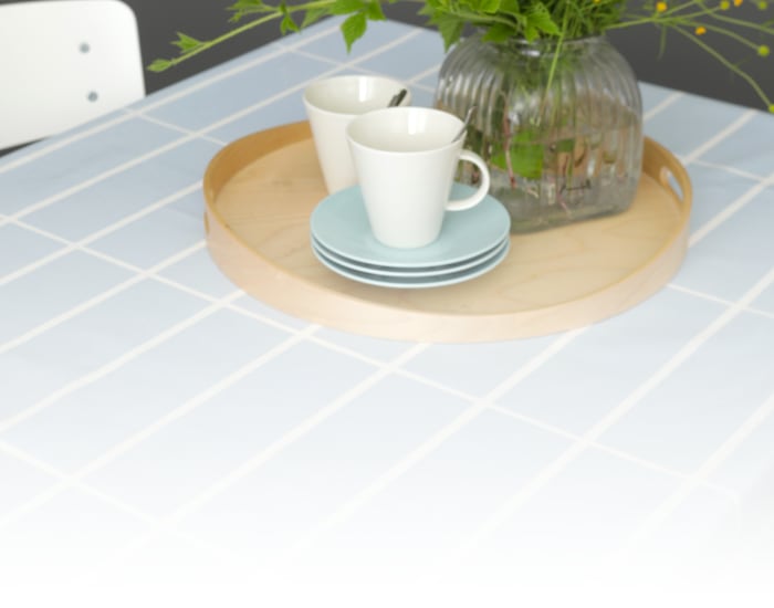 Sininen pöytäliina tuo kattaukseen raikasta ja seesteistä tunnelmaa. Se on ajaton ja monikäyttöinen valinta, joka sopii niin arkeen kuin juhlaankin, luoden tyylikkään pohjan aterialle.