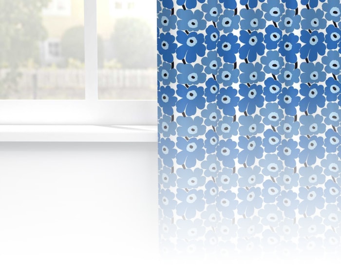 Siniset verhot tuovat tilaan rauhallisen ja levollisen tunnelman. Sininen on ajaton värivalinta, joka luo kotiin seesteistä harmoniaa ja tekee ikkunoista tyylikkään katseenvangitsijan.